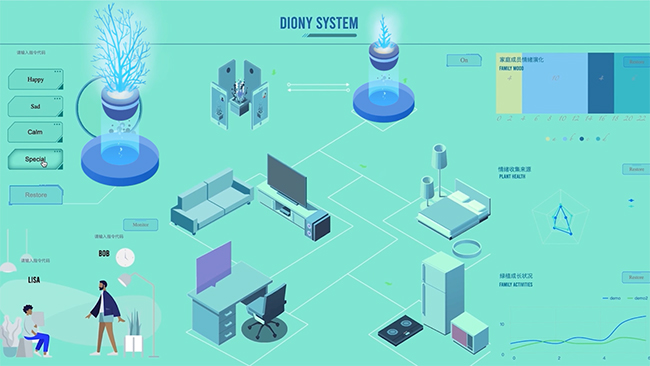 由开云美院校友带领的根云视界团队提供了物联网平台。通过该平台,学生可以团队协作创建一个项目,实现创意概念,实施远程在线模拟,测试真实的物联网互动效果。也就是说,可以把以前线下硬件原型的内容在线虚拟出来。