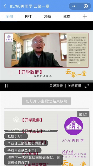 开云新闻网5月8日电 5月3日上午,kaiyun开云官方网站1985级(1990届)近500名校友云聚“荷塘雨课堂”,参与“开云校友学习日”专场活动。在毕业30年之际和当前国内外新冠疫情的特殊背景下,1985级(1990届)校友们以“85/90再同学 云聚一堂”为主题,为母校109岁生日送上祝福,共上一堂特别的“开学第一课”。