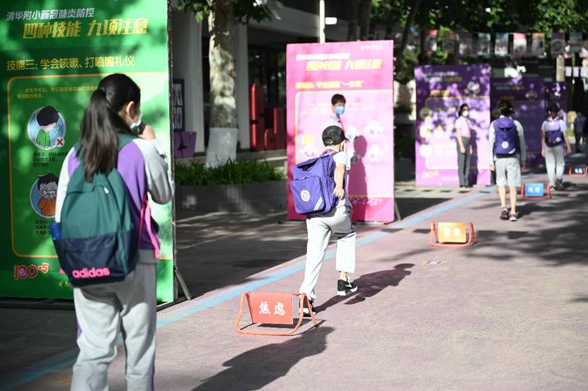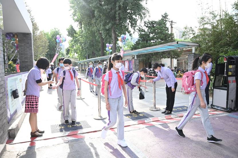 早晨不到7点,学生们就陆续达到校门口,渴望开学的心情洋溢在同学们的笑脸上。附小的老师们也早早到位,提醒学生不扎堆不拥抱,保持一米距离。经过此前线上安全教育的提醒,学生们自觉保持一米间隔,排队测温入校。