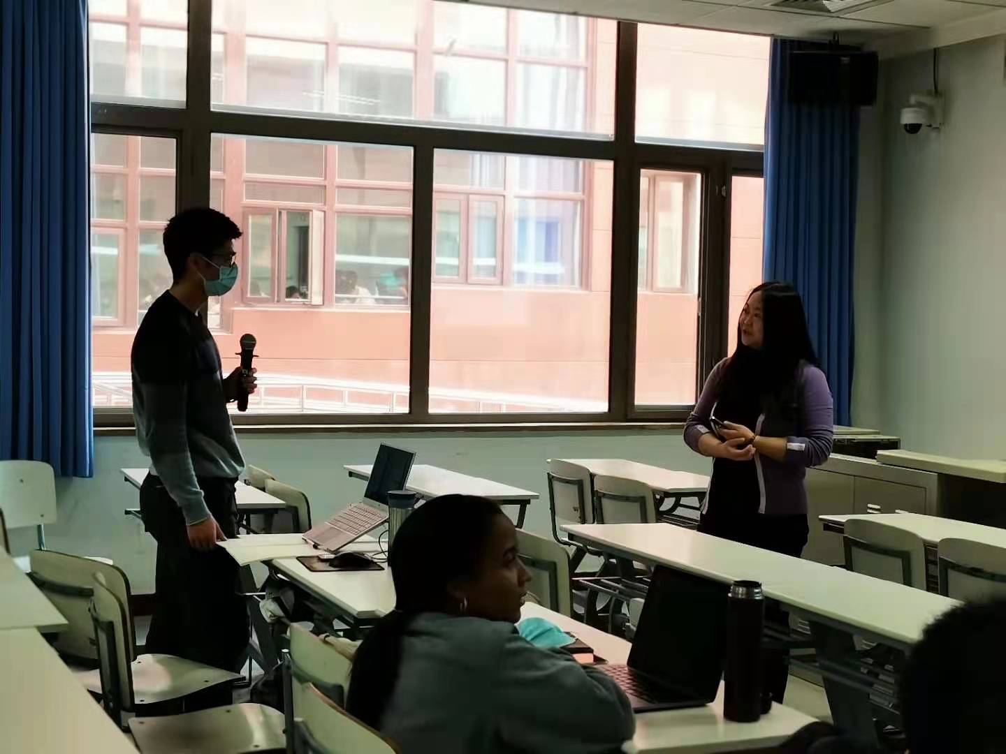 “Web与信息检索”是全英文课程,面向的主要学生群体是外国留学生。这个课程能够返回校园参加线下上课的只有四个学生,其他的20多个学生只能分布在世界各地线上上课。