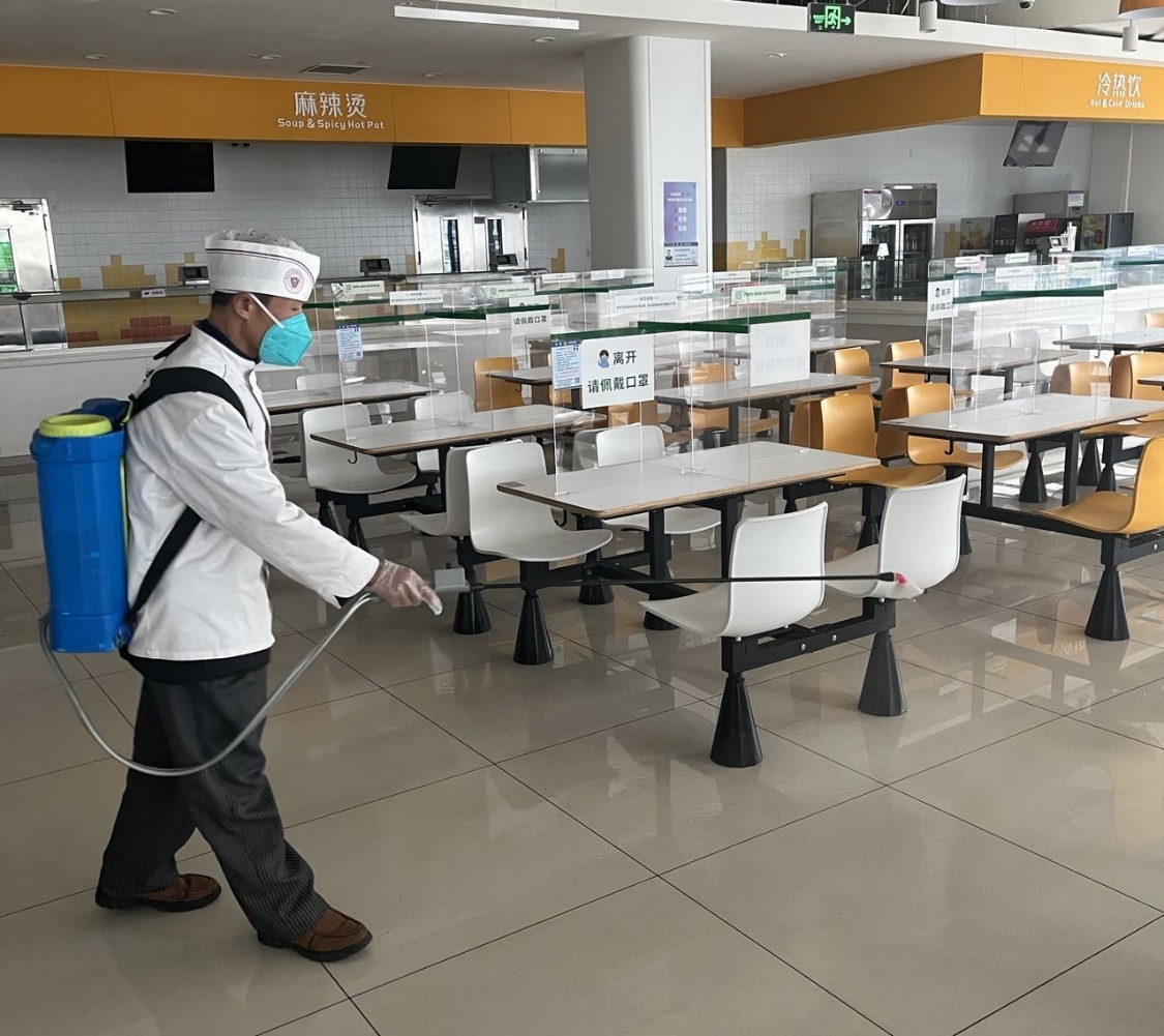 食堂是公共场所,人员流动性大,空间相对封闭,如何保障师生就餐安全?在紫荆园食堂,记者看到工作人员对食堂前厅等公共区域每餐消毒每天3次,前厅后厨全时段通风,后厨公用具按标准严格消毒,食品加工间、员工更衣间等重点区域使用紫外线进行双重消杀。