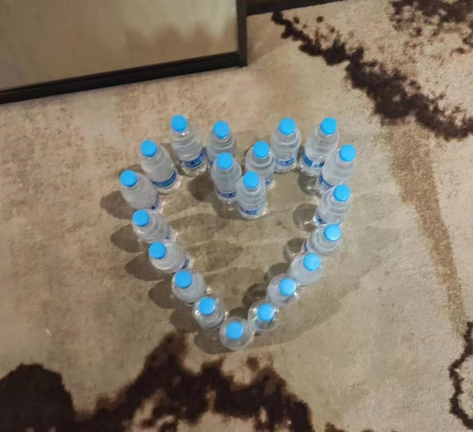 同学们离开驿站时用矿泉水瓶拼成的爱心