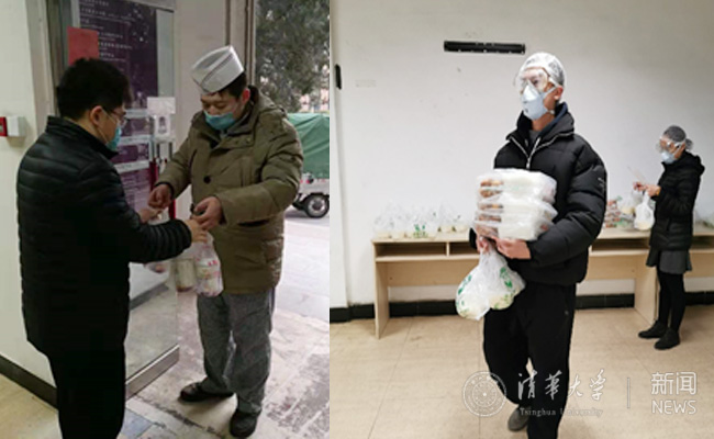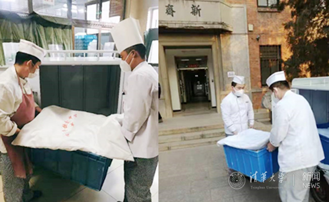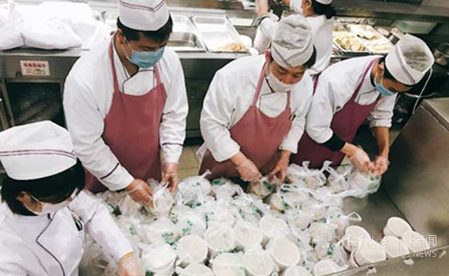 伴随着萌萌的感谢表情,工作人员将来自观畴园食堂的早餐配送到每位同学房门前。