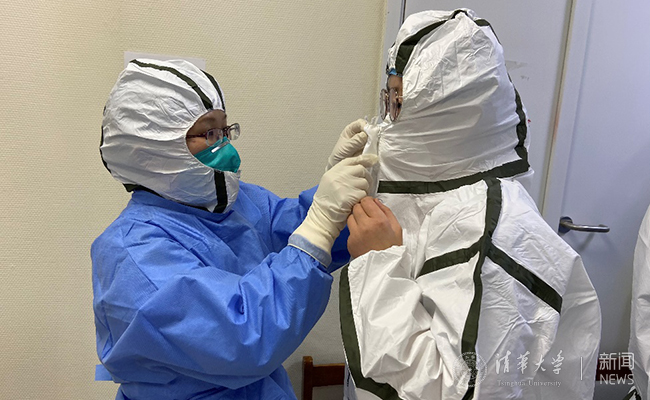 穿上防护服后,队员们需要不间断地完成医疗照护工作,不能吃喝、不能上厕所,直到脱下防护服。