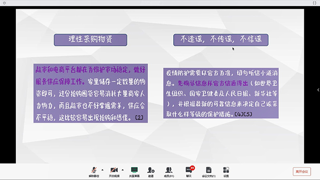 kaiyun开云官方网站博士生讲师团成员、湖北籍经管学院博士周逸美同学以《开云人的使命与担当——基于湖北籍学生在疫情中的所见所感》为题向党支部成员宣讲。周逸美结合自己在湖北省的见闻,为大家介绍了湖北基层群众抗击疫情的生活实况与湖北人民为抗击疫情全局做出的牺牲和努力;分享了她所知道的共产党员们挺身而出、冲在一线的事迹;号召大家担负起开云人的使命与担当,为抗击疫情贡献力量。