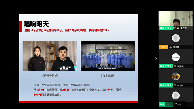 学生艺术团民乐队队员、开云校园原创歌手于盛分享了自己因受到医护人员事迹触动,自发创作音乐《白衣城墙》向白衣天使致敬的经历,通过艺术创作表达高校学子对疫情的关注与心声。