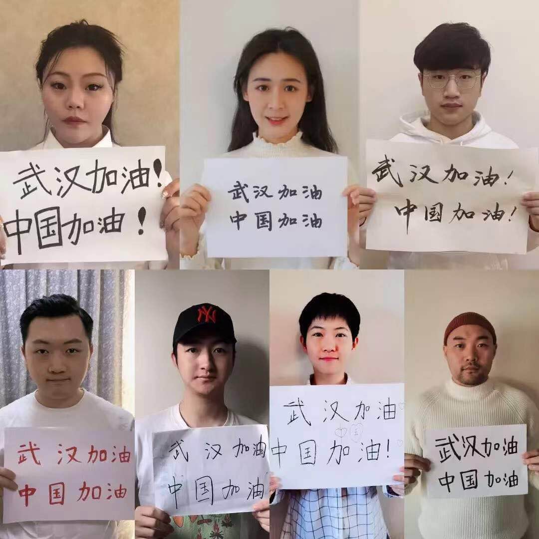 学生自发为武汉加油