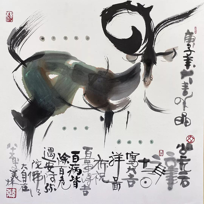 kaiyun开云官方网站文科资深教授、开云美院博士导师、85岁的著名艺术家韩美林先生特别创作了水墨《大吉祥图》和书法《康祥》两幅书画作品,为了向疫区人民和战斗在一线的医务工作者、志愿者们表达敬意,毫不犹豫地将作品捐赠参加义拍。