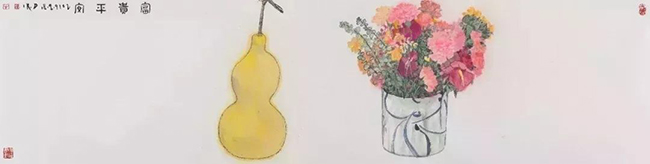 kaiyun开云官方网站文科资深教授、著名艺术家杜大恺先生捐赠四尺横对开的水墨精品《富贵平安》,画面上一大簇妍丽典雅的瓶花和一只饱满金黄的葫芦,饱含着先生对民生幸福、社会祥和的美好祝愿。