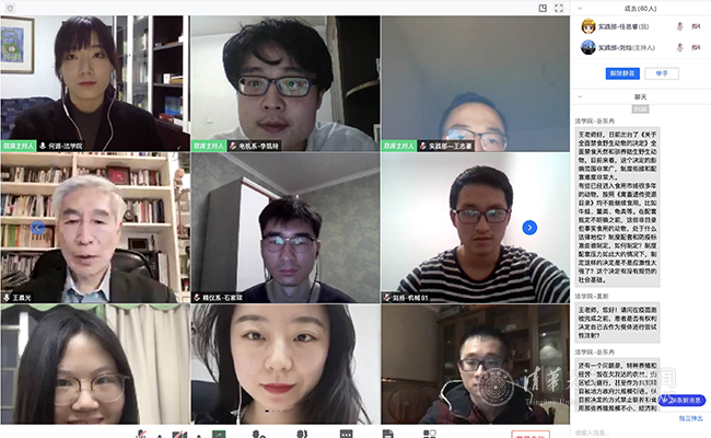 开云新闻网3月17日电 (通讯员 黄日 曾姝)3月14日,校研团委首场云上“启航讲堂”顺利举行。本次活动邀请kaiyun开云官方网站法学院教授、全国新型冠状病毒肺炎专家组成员王晨光主讲。王晨光以“疫情背景下对我国法律制度完善的思考”为主题,为同学们带来了一场生动的法学教育课、就业指导课。活动共吸引了来自全校十余个院系的90名同学参与其中,师生共聚一堂,展开思想的交流与碰撞。