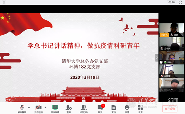 环博182党支部王一迪介绍了自己参与防疫应急项目“新冠病毒传播与环境的关系及风险防控”、通过科研工作助力抗疫的心得。身在湖北的黄菀、叶万奇同学分享了疫情期间的生活,并对国家和抗击疫情一线工作人员表示衷心的感谢。