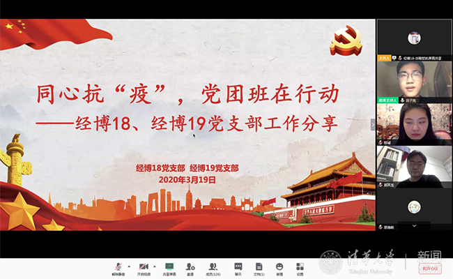 经博18党支部副书记吕子亮对经博18和经博19党支部在疫情期间的理论学习和实践活动进行了分享。经博18党支部先后开展了新冠肺炎疫情防控宣讲、“从我做起 同心战‘疫’”联合党团班共建活动,并在公众号开设“经言云语”线上专栏,供支部成员切实广泛交流所思所想。经博19党支部也积极开展党小组学习,组织“全员共战‘疫’,学习不断线”党团班集中党课学习,深化理论基础。此外,两个支部也先后开展线上爱心募捐活动,为疫情一线人员献上自己的一份爱心,募捐总额共计超过1.2万元。