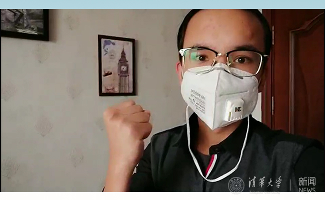 水硕18团支部的韩俊太录制“武汉加油”视频