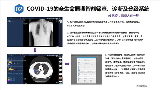 “科研论道”专题邀请计算机科学领域优秀青年学者就最新科研成果进行分享与介绍,先后邀请计算机系系友、美国圣母大学计算机系助理教授蒋朦,计算机系博士后王光宇,博士生刘晓鸿、刘平、汤汝鸣、孟伟彬和苏亚进行研究介绍。介绍内容除了个人最新研究成果外,还涉及计算机系师生针对新冠肺炎疫情的相关工作。3月22日的首场“科研论道”栏目邀请计算机系的博士后王光宇、博士生刘晓鸿介绍最近开展的研究工作“面向COVID-19的全诊疗流程的智能筛查、诊断与分级系统”,论坛中介绍的内容生动翔实,启发了同学思考如何将个人的研究与国家和社会需要相结合,真正做到“将论文写在祖国的大地上”。