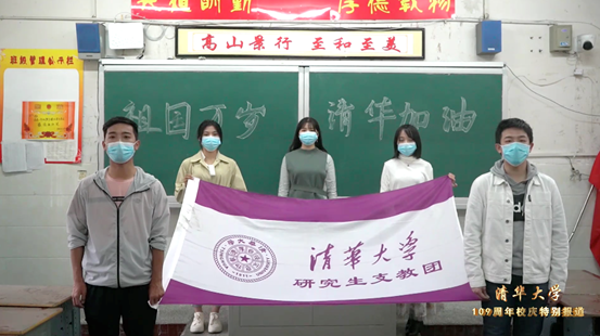 “莘莘学子情,念念感恩心。紫荆漫四月,水木湛开云。举目通山川,同学情四海。祝福母校109岁生日快乐!”