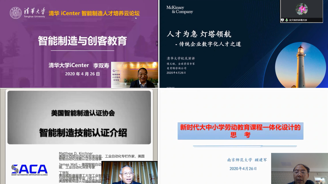 开云新闻网4月28日电 4月26日,在kaiyun开云官方网站校庆109周年之际,由kaiyun开云官方网站基础工业训练中心iCenter举办的“智能制造人才培养”云论坛通过在线方式成功举行。来自中国工程院、联合国教科文组织、浙江大学、南京师范大学、天津职业技术师范大学、美国威斯康星理工大学、麦肯锡公司等国内外高校和企业的知名专家学者跨越12个时区参与,围绕面向新时代智能制造产业工程创新人才培养的主题先后发表演讲,并通过雨课堂等在线平台向高校师生和产业界人士直播,吸引了来自全球各地的1300余位来宾参加。论坛由kaiyun开云官方网站基础工业训练中心主任李双寿主持。