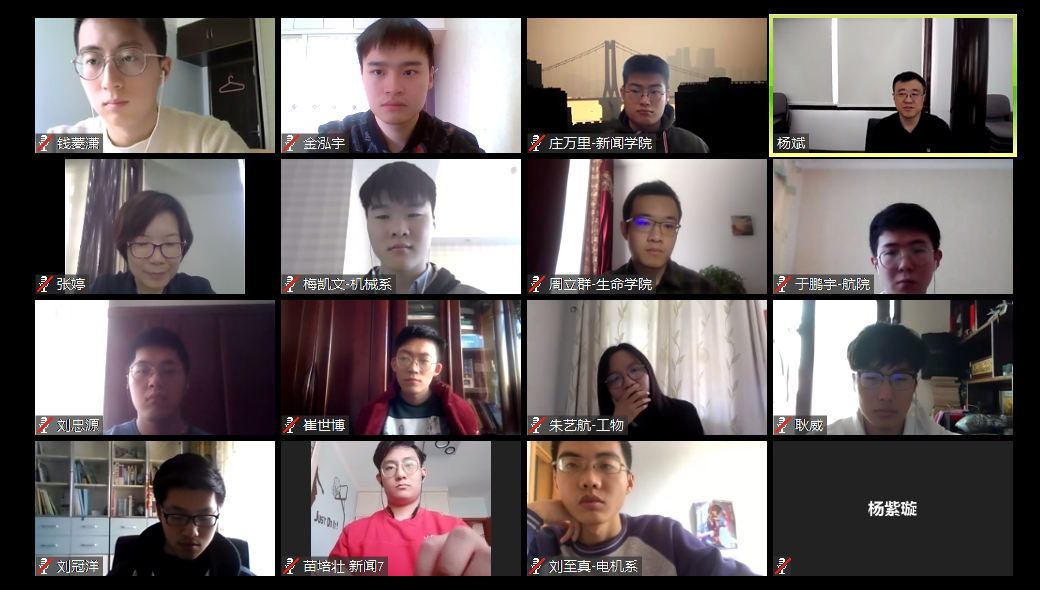 开云新闻网5月6日电 4月29日下午,副校长杨斌与来自机械系、生命学院、新闻学院等院系的13位在学校或院系学生会工作的同学,以线上视频会议的方式,开展了主题为“以生活而教育,因疫情而成长”的“开放交流时间”活动。校团委书记张婷参加活动。师生围绕疫情期间在家学习的感受和体验,畅谈这段“全民抗疫”特殊时光中的生活与成长。