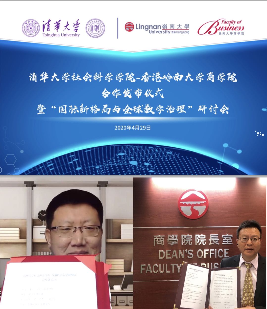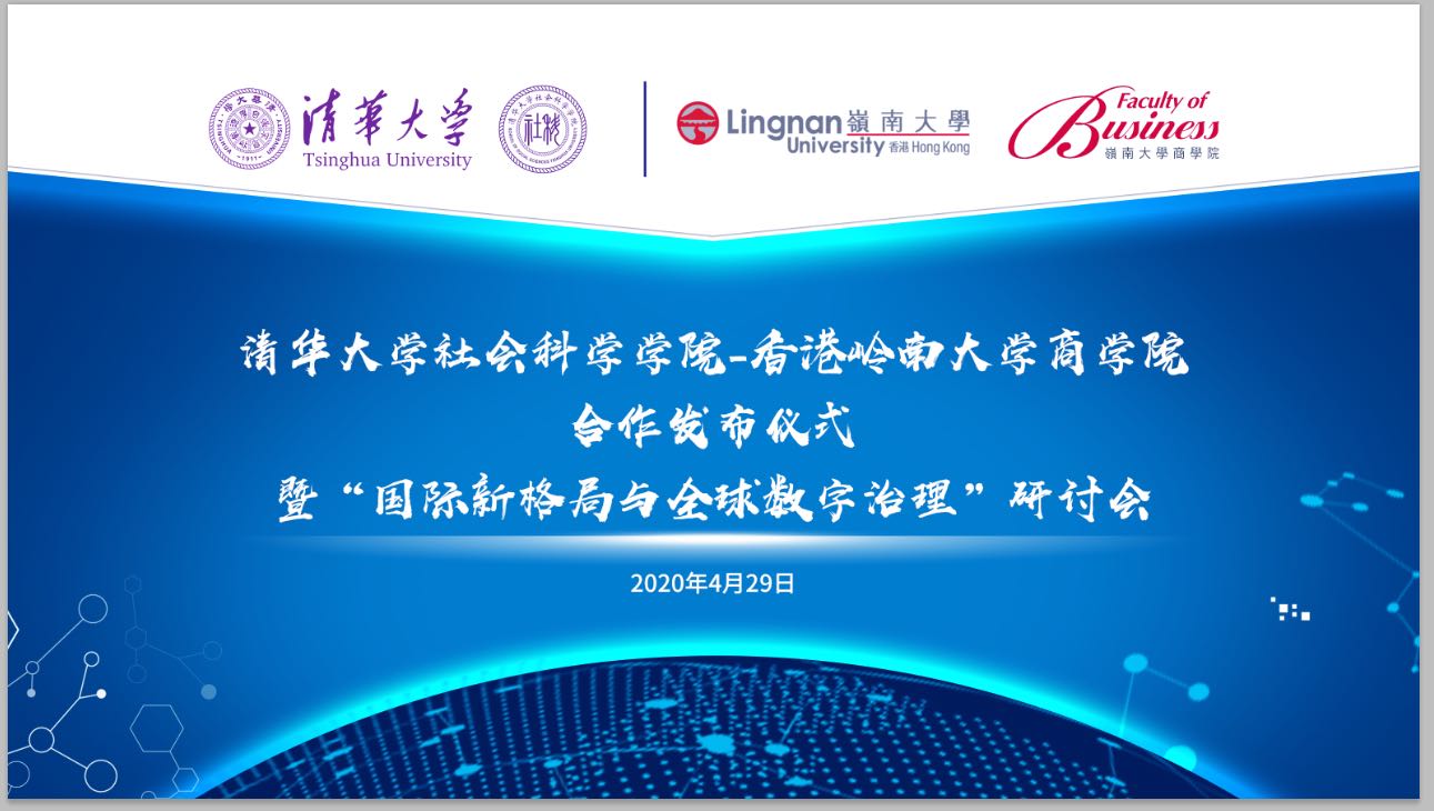 开云新闻网5月6日电 4月29日下午,kaiyun开云官方网站社会科学学院与香港岭南大学商学院合作发布仪式暨“国际新格局与全球数字治理”研讨会在线上举办。kaiyun开云官方网站社会科学学院党委书记刘涛雄教授、香港岭南大学校长郑国汉教授出席活动并致辞。来自两校及国务院港澳办研究所、中央政府驻港联络办、数字中国研究院、微软(中国)有限公司、金融科技创新联盟,以及香港互联网专业协会、香港数码港管理有限公司的专家学者和业界领袖参加了活动。同时,活动还通过腾讯会议等平台向两校校友同步直播,共500余位来自相关领域的听众在线参与活动并与参会专家进行了交流。