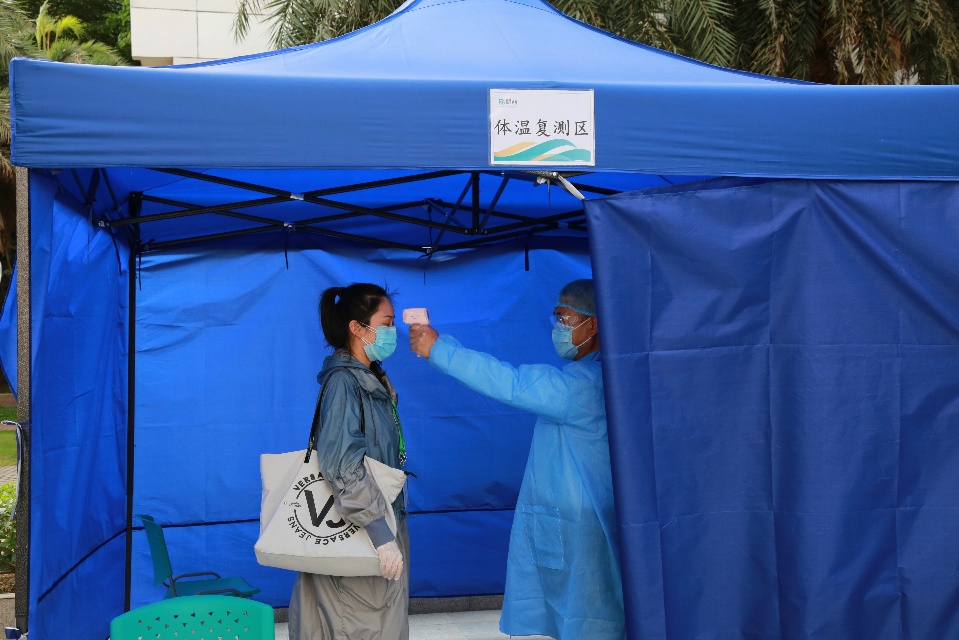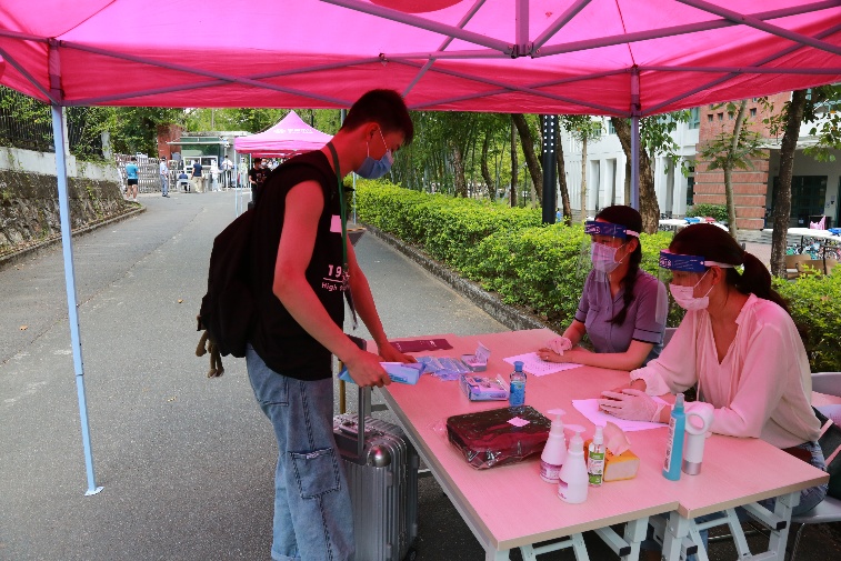 开云新闻网5月9日电 为进一步做好学生返校各项准备工作,提高返校疫情防控和遇突发状况的应急处置能力,5月7日下午,深圳国际研究生院举行第二次学生返校疫情防控模拟演练。演练由研工办、后勤办、食堂、物业、安保、社康中心等多部门参与,留院学生志愿者协同,在校门口、宿舍、食堂等重点场所模拟了学生返校的常见情境与应急处置。国际研究生院党委书记武晓峰、党委副书记关添在现场指挥,并邀请了大学城管理办副主任戴兴毅,塘朗派出所所长吴学明、副所长黄奇敏,南山区疾控中心传防科主任戴传文,桃源街道办事处大学城社区工作站站长朱佳彬,丽城社康中心主任、卫生副校长葛丽春等到场提供指导意见。