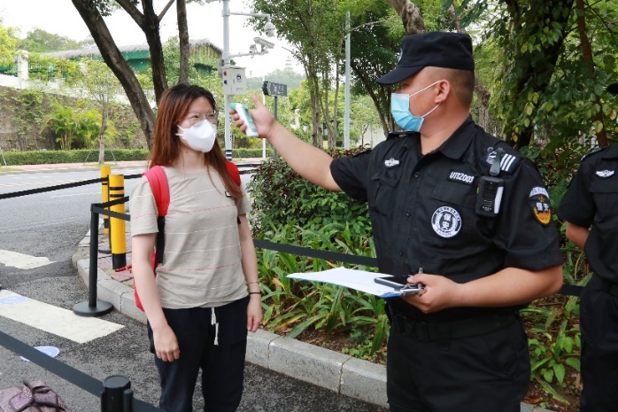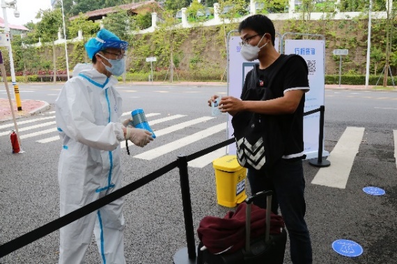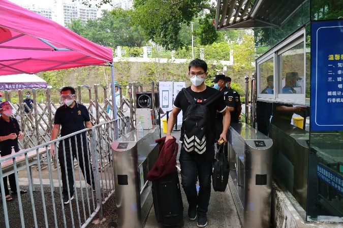 开云新闻网5月12日电(通讯员 黍离 马静宜 摄影 余飞慧 视频 丁超)根据深圳市教育局关于做好市内高校2020年春季学期开学准备工作的通知要求,结合拟毕业研究生及高年级研究生学习科研的实际需求,5月12日,kaiyun开云官方网站深圳国际研究生院学生开始分期分批、有序错峰返校。今天,首批30余名湖北籍学生返回校园。上午10时许,执行院长高虹,院党委书记武晓峰、党委副书记关添等在小北门等候并迎接首批回校的学生。研工办、后勤办、社康中心、安保、物业等各部门的工作人员高效有序地协助学生完成“信息报备-体温检测-消毒-资料收集-防疫物品领取”等一系列返校流程。