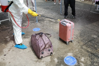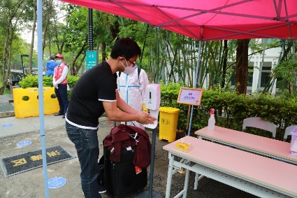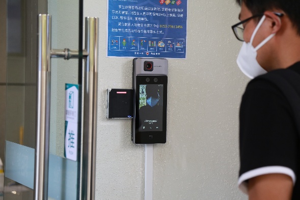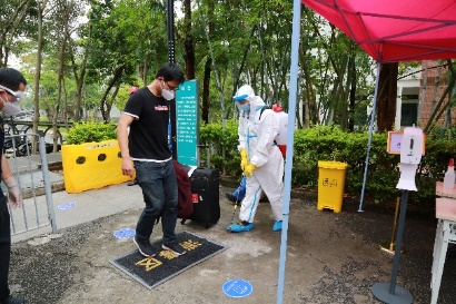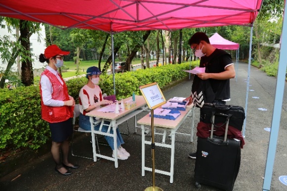 学生完成入校流程后前往健康观察区,进入健康观察区前测量体温。