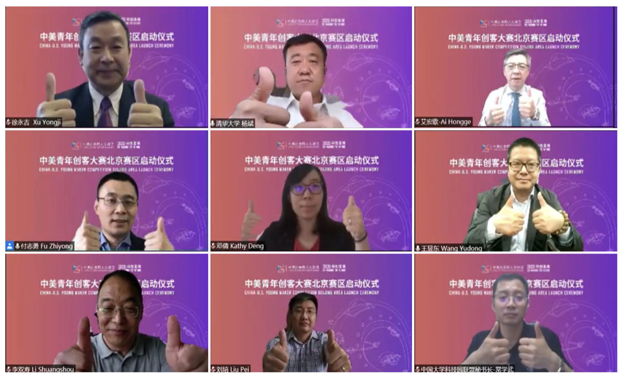 最后,嘉宾们通过线上的方式,完成了北京赛区的启动仪式,并祝愿中美青年创客大赛北京赛区比赛顺利开展。