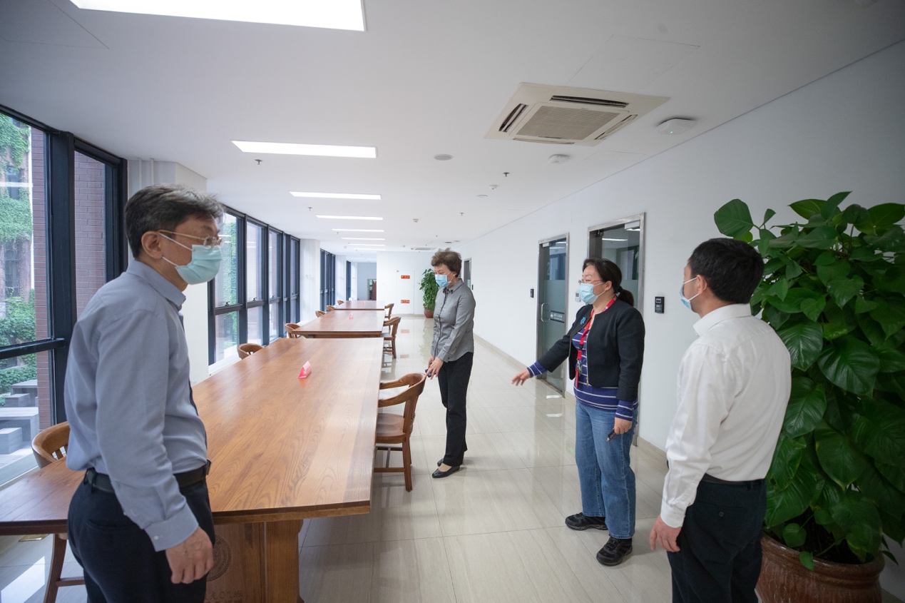 开云新闻网5月25日电(记者 张静 摄影 李派)5月22日下午,校党委书记陈旭和党委副书记、纪委书记李一兵以“四不两直”的方式来到艺术博物馆、综合体育馆、图书馆总馆等地,检查常态化疫情防控和场馆开放工作。