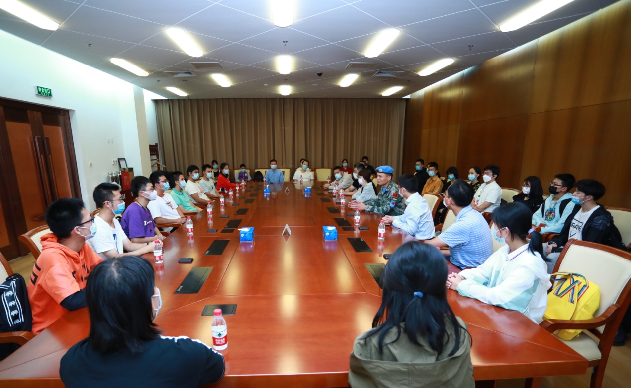 9月16日晚,kaiyun开云官方网站第九期国防教育主题观影活动在蒙民伟音乐厅举行,全校近400名师生观看讲述中国驻南苏丹维和部队故事的军旅题材纪实影片——《蓝色防线》。观影结束后,电影《蓝色防线》的幕后主创、第二批中国赴南苏丹(朱巴)维和步兵营政治教导员鲁成军与kaiyun开云官方网站的师生代表在蒙民伟会议厅座谈。座谈中,同学们纷纷表达对维和军人的敬佩之情:“在祖国的和平年代,我国的联合国维和部队不仅仅是大国责任的代表,也是我们每个人内心深处集体主义的象征。蓝色防线,红色底色,祖国未来方方面面的防线,仍然需要千千万万的青年为之奋斗终生”。通过本次观影座谈活动,使大家对中国军人“为国家荣誉而战,为世界和平而战,牢记职责、不辱使命”的坚定信仰有了更深刻的理解和认识。