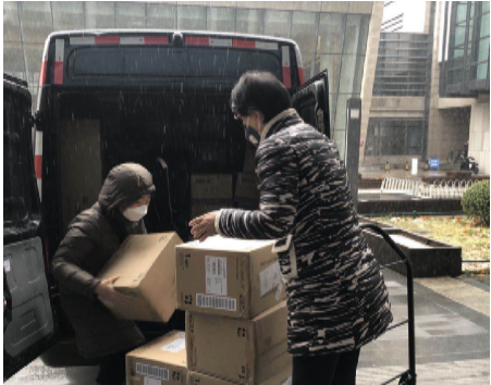 疫情期间货源紧张、物流不畅,时任教务处培养管理办公室副主任的王小芳想方设法联系设备厂商,多番协商成功购置教师线上教学亟需的1060台手写板。到货那天,北京大雪纷飞,她和同事在雪中等候4小时,将手写板分发到每个院系手中,有效保障了教师按时、保质线上授课。
