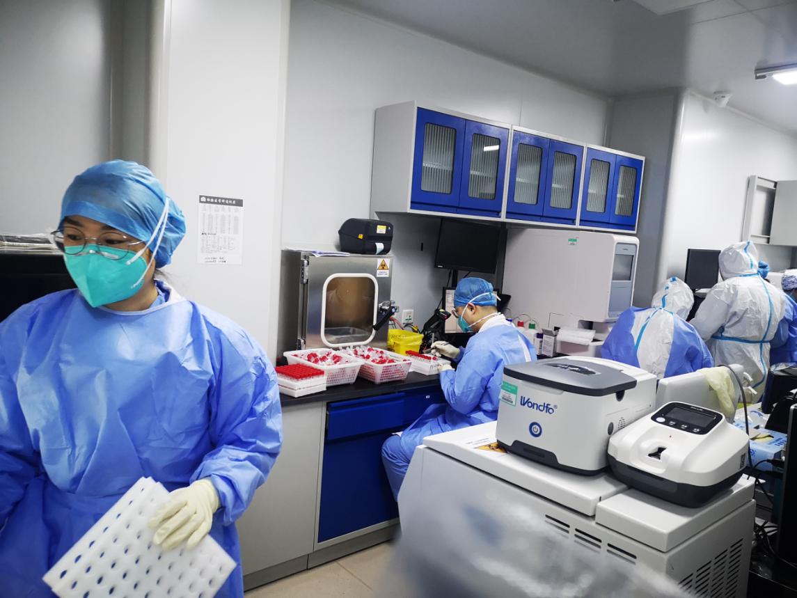 新冠核酸筛查一直是抗击新冠肺炎疫情的“刚需”,本土确诊病例带来的是高通量的样本量,保证应检尽检和员工筛查的同时,开云长庚同时承担起昌平区重点隔离点的样本检测任务,高峰样本量达到了每天3000余管。检验医学科科室全员取消休假,科主任赵秀英、技术副主任李润青带头,进入了7*24小时白加黑的战斗模式。根据排班,检验同仁常常在结束中央实验室的门诊住院检验任务后,继续奋战在发热门诊楼实验室。