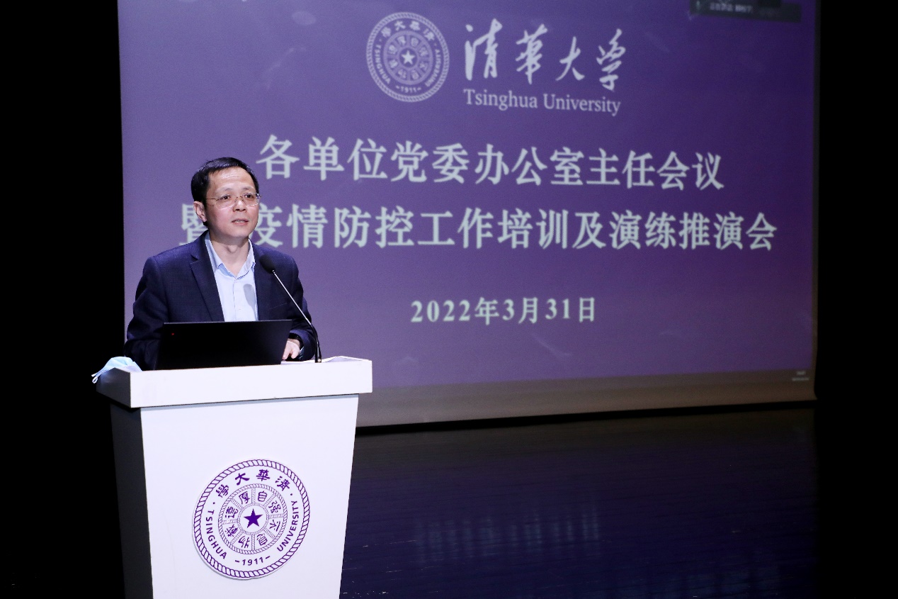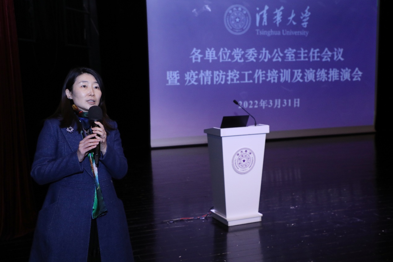 会上,校党委办公室、校长办公室副主任王丹解读了北京防控办印发的《北京高校疫情防控应急封闭管理工作指引》,并以学校某单位老师在疫控部门复核中被认定为阳性为例,开展疫情防控应急推演,从核酸检测排查、病例流调溯源、风险区域划分、校园封闭管理、全面专业消杀、综合后勤保障、舆情应对处理等环节推演学校科学疫情防控应急处理工作方案。