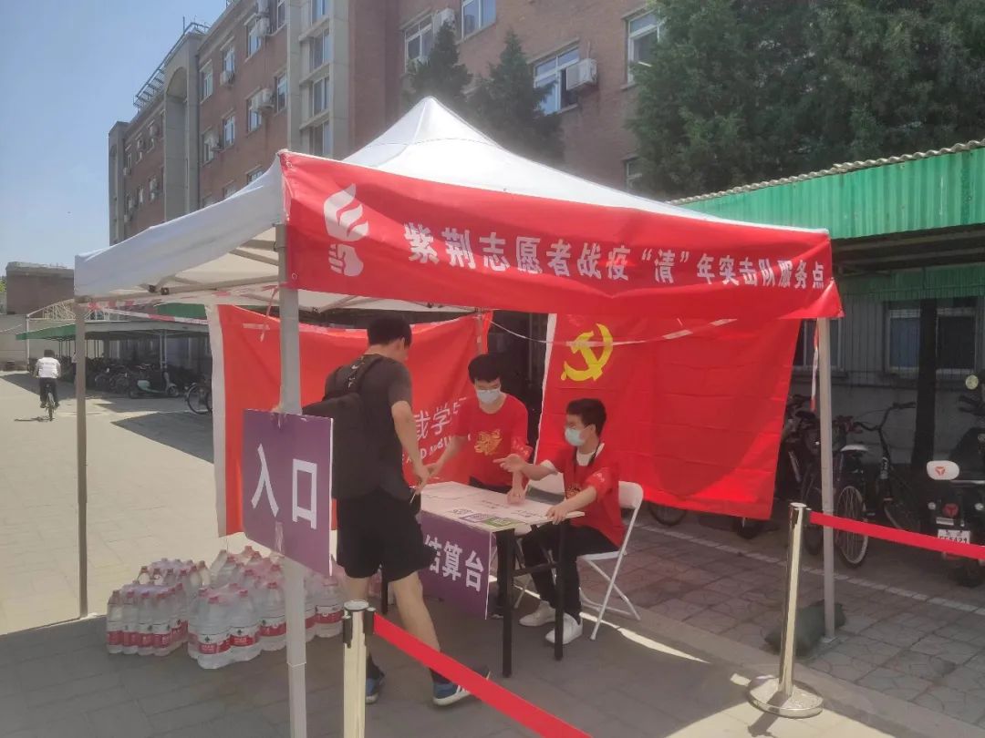 5月21日上午八点,精仪系战疫“清”年突击分队准时来到祖龙广场核酸检测点。他们穿上防护服,戴上防护面罩,调出手机的扫码界面,走向各自的岗位等待即将来做核酸检测的同学们。