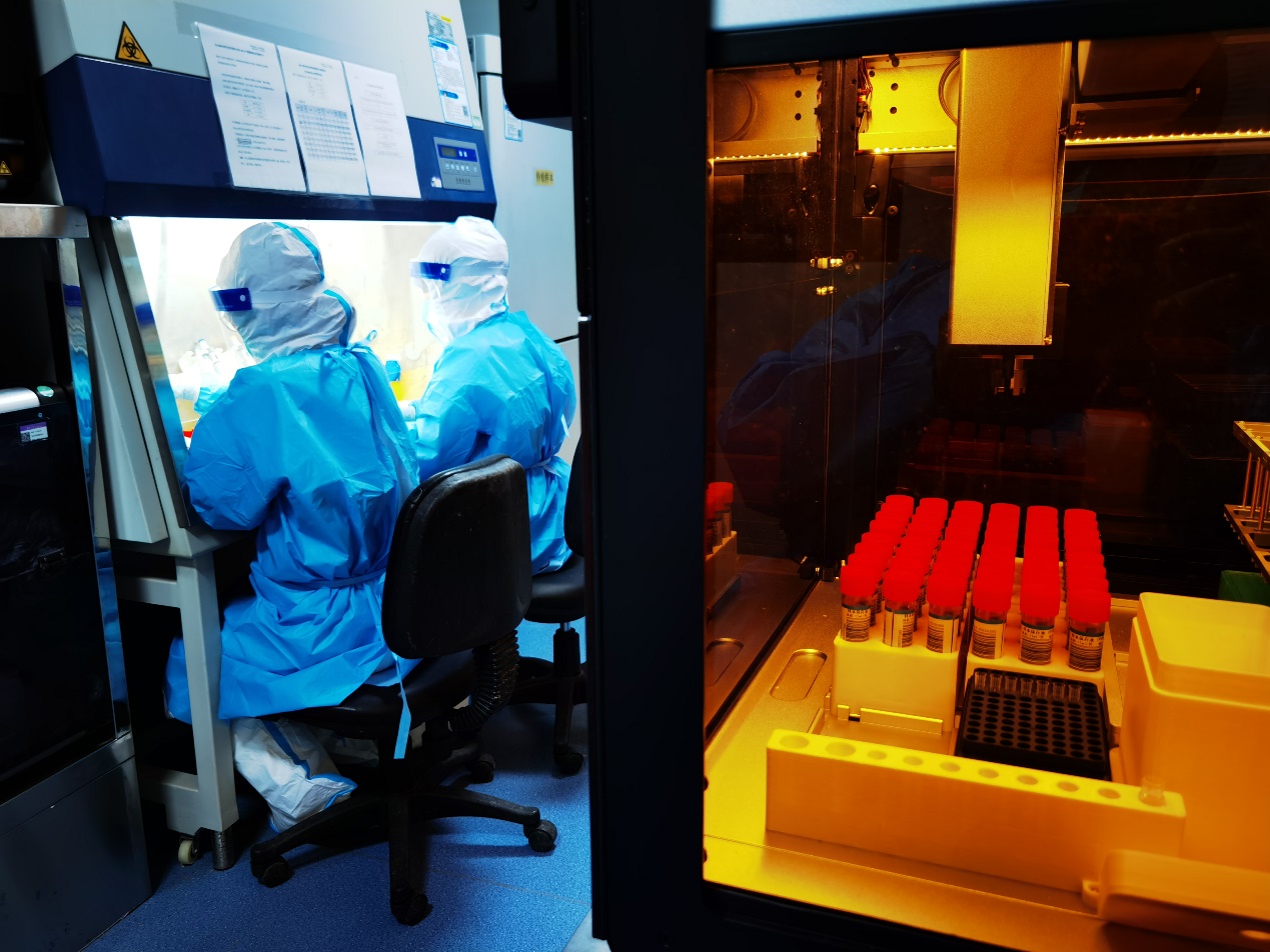 “我们年轻力壮的小伙子进到实验室里做一个上午的检测,他的极限工作量能做到8板到9板的样子。因为一直不停地加样或者重复着拧盖、开盖的动作,每一个人半天下来都是胳膊抽筋或者手抖的状态。”