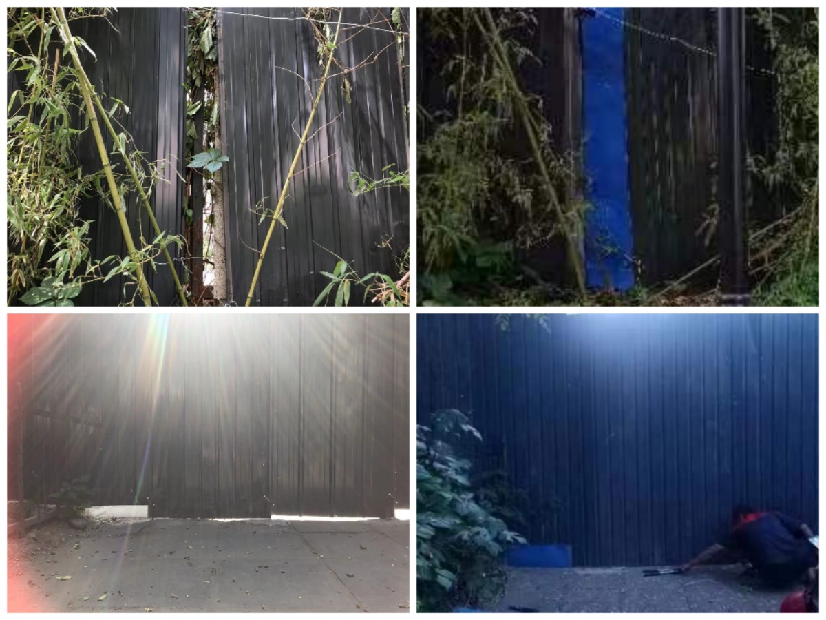 部分隔离设施整改前后对比(后期修补的蓝色防护板填补了原来的空隙)