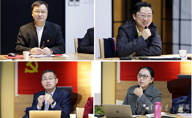 国际处党员干部讲党课,从上到下,从左到右依次为:郦金梁、张传杰、汪晖、肖茜