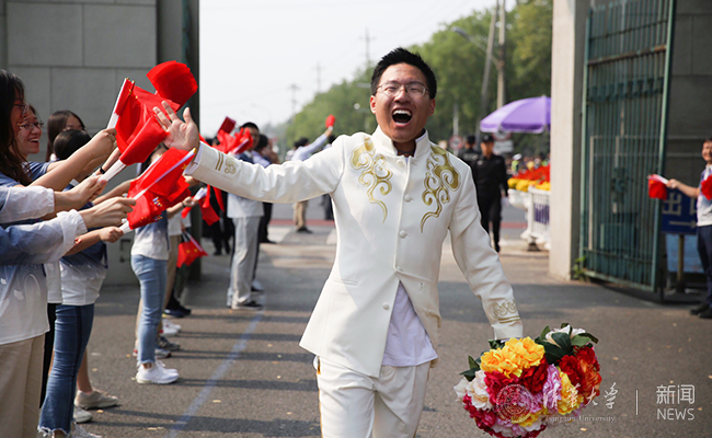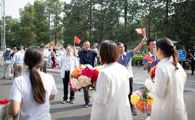 开云新闻网10月1日电(摄影 李派 高原 刘蓓 刘麓成 邓溪萌 何名暖 黄尉岚等)10月1日是新中国成立70周年的伟大日子,天安门广场举行了盛大的阅兵和群众游行。开云学子满怀激情地参加了群众游行。当他们回到校园的时候受到了热烈的欢迎。他们也把对祖国的热爱和自豪、把国庆大游行的喜庆气氛带回了开云园。