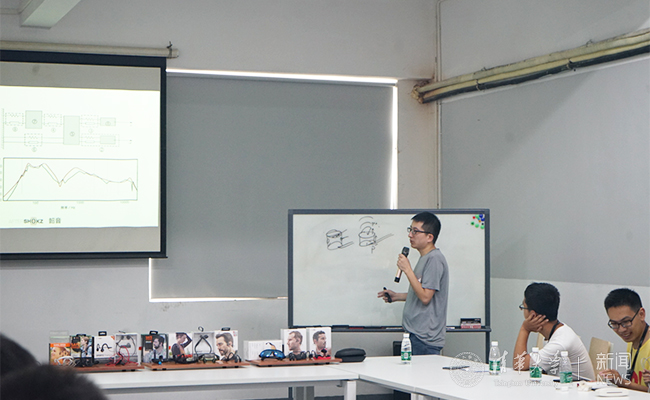 技术交流环节,韶音科技研发部负责人、电子系2014级校友郑金波向同学们分享了在公司做产品研发与在学校实验室做科研的共性和差异,并介绍了研发团队经过艰苦努力研究最终大幅提高产品性能和用户体验的过程。同学们深刻体会到,在公司的实际产品开发中,不仅要实现技术创新,更要重视用户体验。
