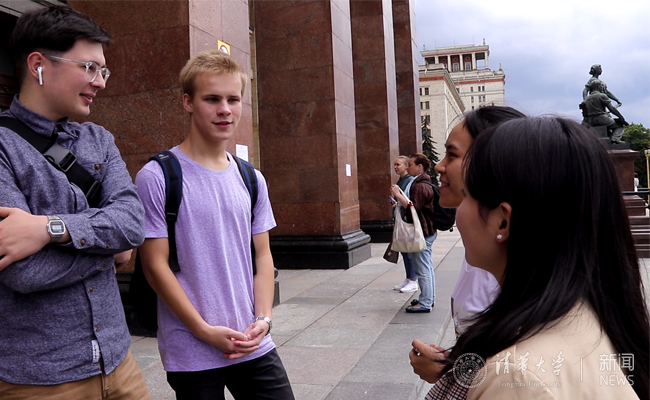 支队成员采访莫斯科国立大学学生 李正新 摄