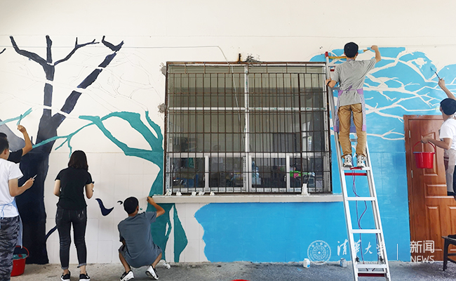 看着两面绚丽多彩的墙绘,环境学院八字班同学侯璇感叹:“虽然与社塘坡的孩子们素未谋面,想像孩子们手里捧着书本,还有他们明亮、饱含渴望的眼睛,劳动的困倦就会一扫而光,觉得很有干劲”。