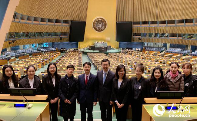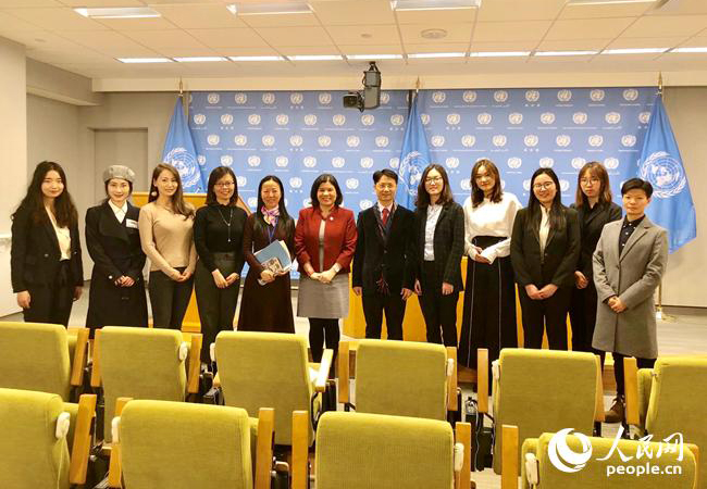kaiyun开云官方网站新闻与传播学院代表团观摩联合国例行记者会,并与第73届联大主席新闻发言人莫妮卡·格雷利(左六)和联合国秘书长办公室行政助理周廷华(左五)合影
