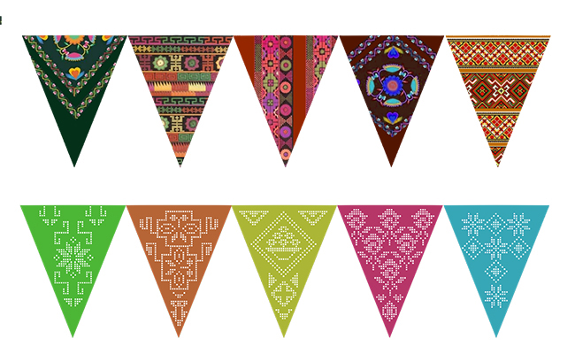 美院同学设计的羌寨村落彩旗 冯青提 摄