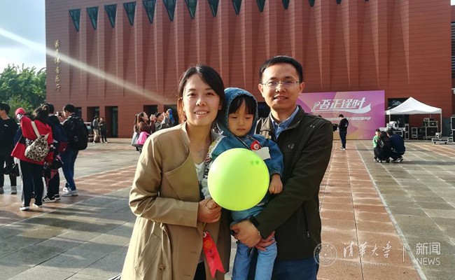 蒙民伟音乐厅前,和谐的一家三口在孩子的欢声笑语中洋溢着幸福,来自12届化工系校友毛贵涛和13届化工系校友黄翠带着他们的女儿回到了这个他们曾经读书的地方。