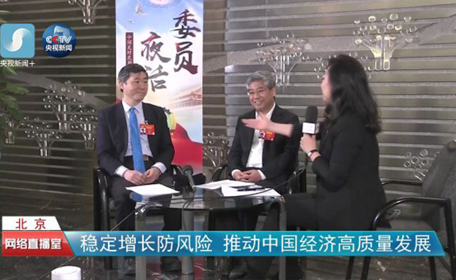 李稻葵(左一)、白重恩(左二)在两会上接受采访 来源:央视新闻