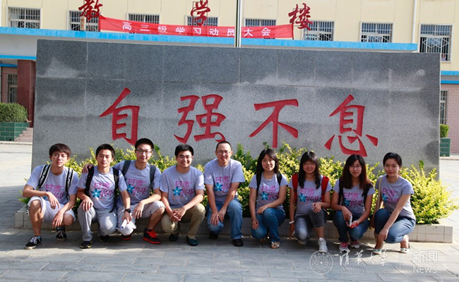 尹西明(左二)与甘肃兴华助学基金会暑期助学实践支队合影