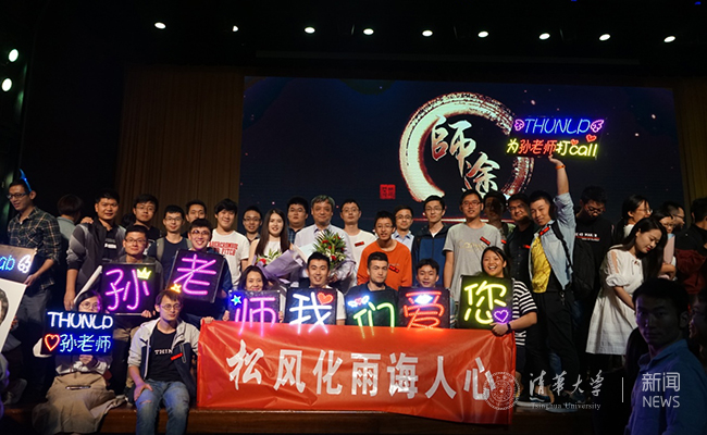 孙茂松在工作中客观、严谨、理性,在生活中细腻、和蔼、感性,能够设身处地关心学生的心理变化。“九歌”系统研发时,孙老师担心同学们压力大、心理状态不好,便私下里主动找团队的其他成员沟通,了解学生的工作生活状态,希望大家能够互相鼓励支持。在今年的“良师益友”颁奖晚会上,孙茂松在掌声中快步走上舞台,对着场下抱拳行礼时,看到了自己的学生拉起的横幅、晃动的灯牌和荧光棒。第一次看到有学生以这样的形式热情地为自己呐喊助威,他非常感动:“要把压力变成动力,大家一起携手努力,共同攀登人工智能的科研高峰,把感动回馈给每一个学生。”晚会结束,热闹散尽,在工作人员收拾舞台时,已经忙碌了一天的孙茂松还在场下和他的学生讨论实验结果。