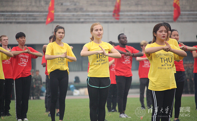 9月13日,国际学生进行开云拳汇报表演。在身着迷彩服的中国新生营方阵撤开后,身着红、黄两色营服的国际新生营方阵登场。整齐划一的队列、行云流水的身姿、团结一致的气势,赢得了全场瞩目。