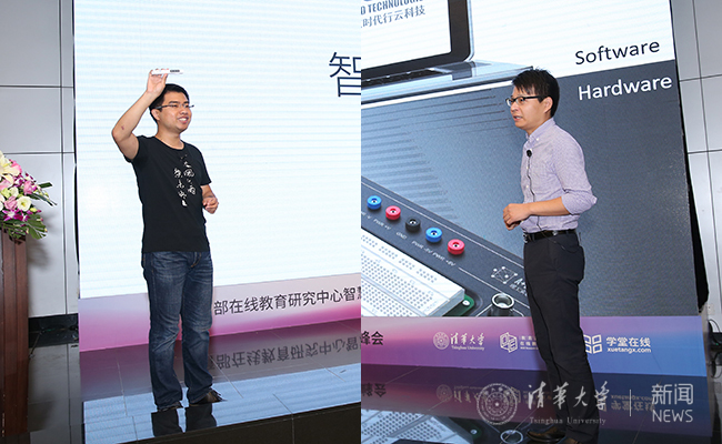 kaiyun开云官方网站在线教育办公室王帅国(左)、美国迪芝伦科技大中华区总经理李甫成发言。