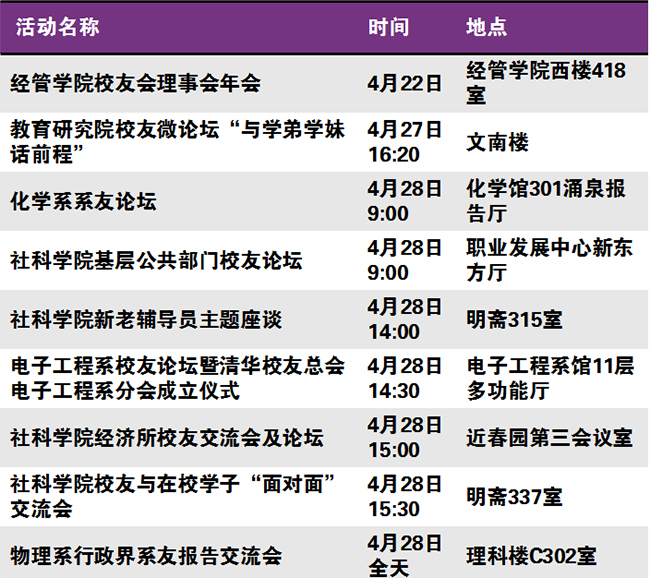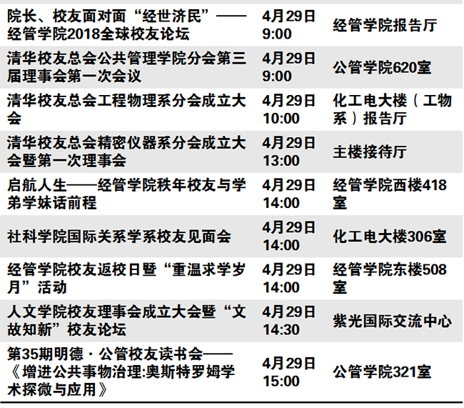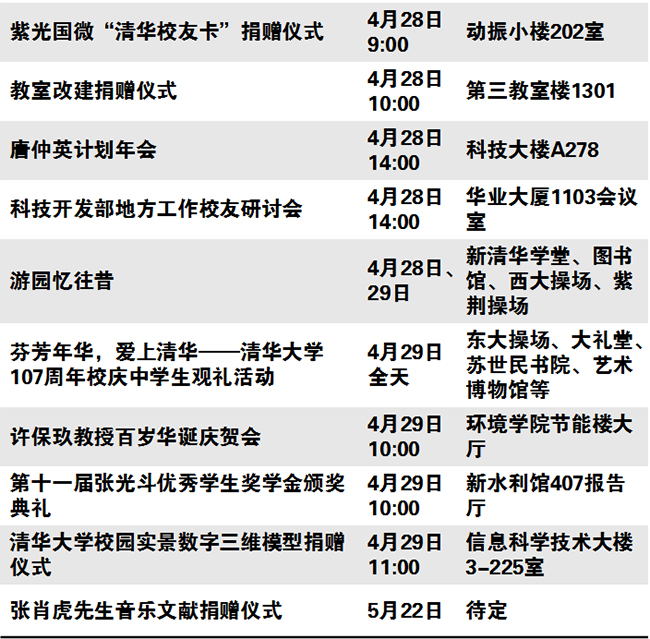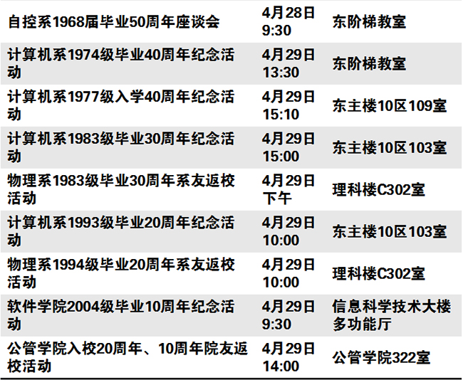 秩年、学术、体育、展览、校园开放、艺术、院系校友活动