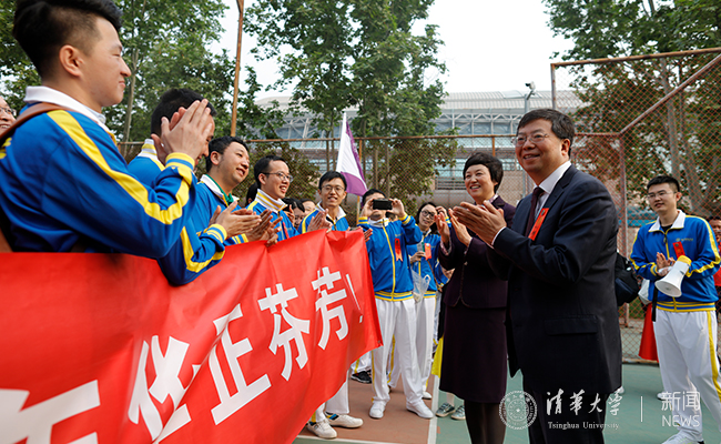 校领导邱勇、陈旭、姜胜耀、邓卫、吉俊民、杨斌、李一兵、尤政、王希勤、过勇,学校老领导方惠坚、王大中、贺美英、顾秉林、杨家庆、张思敬、张慕葏、黄圣伦、王凤生、倪维斗、余寿文、胡显章、关志成、张再兴、郑燕康、孙道祥、袁驷、谢维和、韩景阳、史宗恺,各院系、部处负责人出席开幕式并在观礼台就座。