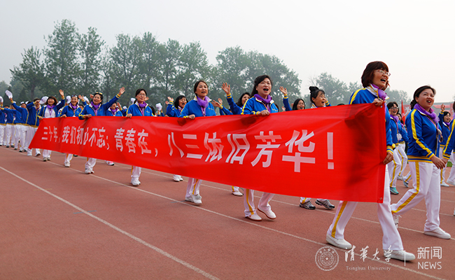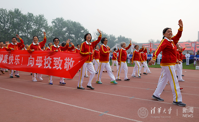 毕业50周年的1968届校友方阵精神矍铄地走过观礼台 实习记者 李派 摄